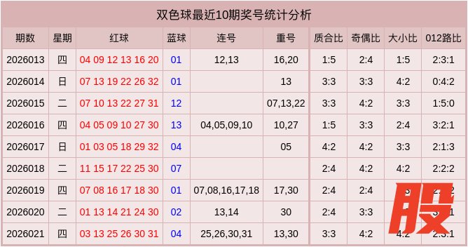 012路比分析:上期红球开出012路比为2:3:1,其中1路表现较热,最近10期红球012路比为19:26:15,本期012路比参考1:3:2。